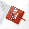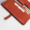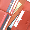 Ví da nữ Kalpa, sản phẩm thủ công (handmade), chất liệu da bò màu nâu phối cam đất. Sản phẩm của Kalpa được sản xuất thủ công (handmade)  từ cắt, đến may và sơn cạnh. Da bò được chọn lựa kỹ. Sản phẩm được bảo hành 1 năm.